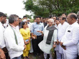 येवला तालुक्यातील गवंडगाव, रस्ते सुरेगाव, पिंपळखुटे खुर्द, वाघाळे आणि निफाड तालुक्यातील कोटमगाव व वनसगाव येथील अतिवृष्टीमुळे नुकसान झालेल्या शेतकऱ्यांच्या पीकांची पाहणीसह मांजरपाडा प्रकल्पाच्या माध्यमातून भरण्यात आलेला डोंगरगाव साठवण तलावाची पाहणी यावेळी मंत्री श्री भुजबळ यांनी केली