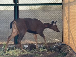 सदर वन्यप्राणी सांबर मादी असून अंदाजे वय 5 ते 6 वर्षे आहे. हे सांबर गौळाणे गावाचे मागील बाजूच्या जंगलातून आले असावे असा अंदाज आहे…सांबर सध्या सुस्थितीत असून त्याच्या डाव्या डोळ्यावर पुढील उपचार करण्यात येत आहे…