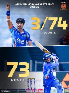 पंजाब विरुद्ध ३ बळी व फटकेबाज ७३