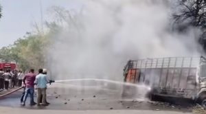 पुणे येथून आर्मी सीओडीचे साहित्य घेऊन भटिंडा (पंजाब) कडे जात असताना पिंपळगाव जलाल टोलनाक्या जवळ महामार्ग (हायवे ट्रॅप) पोलिसांनी ‘नो एंट्री’ चे कारण देत आपली आयशर ट्रक अडववून ‘३० हजाराचा दंड भर किंवा पाच हजाराची लाच दे’, अशी मागणी केली. मी, लाच देण्यास नकार दिल्यानंतर वाद वाढला आणि एका पोलिसाने फेकलेल्या सिगारेटमुळे ट्रकमधील एसी गॅस सिलिंडरने पेट घेतल्याचा आरोप ट्रकचालक जगतार सिंग यांनी केला. दरम्यान, येवला नगरपालिकेच्या अग्निशामक दलाने घटनास्थळी धाव